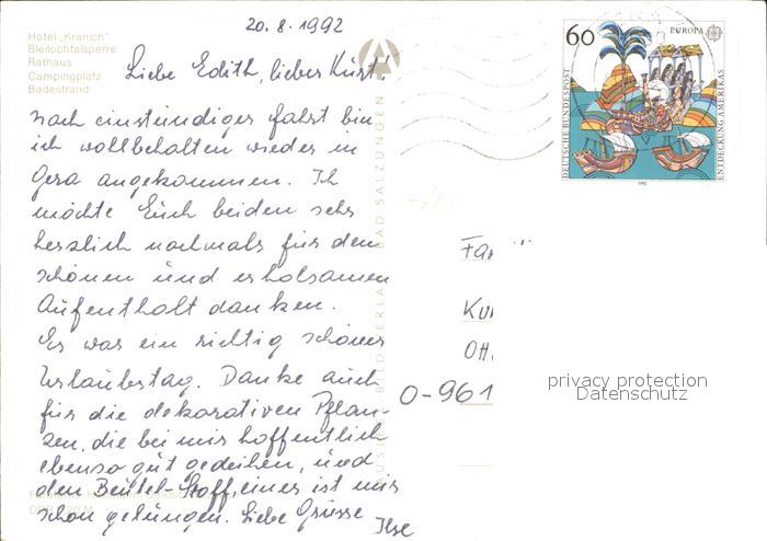 72424018 alte Postkarte Saalburg-Ebersdorf Bleilochtalsperre Hotel Kranich Camping Strand postalisch gelaufen Erhaltung siehe scans KatCode: 11110016075135