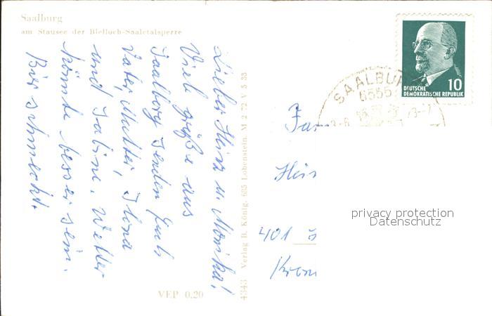 72038675 alte Postkarte Saalburg Saale am Stausee der Bleiloch Saaletalsperre postalisch gelaufen Erhaltung siehe scans KatCode: 11110016075135
