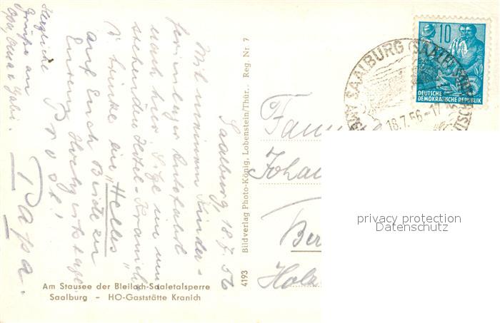 73098301 alte Postkarte Saalburg Saale Bleiloch Saaletalsperre postalisch gelaufen Erhaltung siehe scans [KathaD81] KatCode: 11110016075135