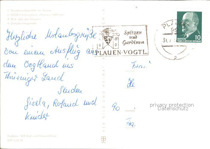 72371754 alte Postkarte Saalburg Saale Dampferanlegestelle FDGB Erholungsheim Talsperre postalisch gelaufen Erhaltung siehe scans KatCode: 11110016075135