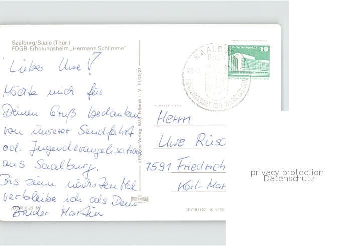 71964172 alte Postkarte Saalburg Saale Erholungsheim Hermann Schlimme postalisch gelaufen Erhaltung siehe scans KatCode: 11110016075135
