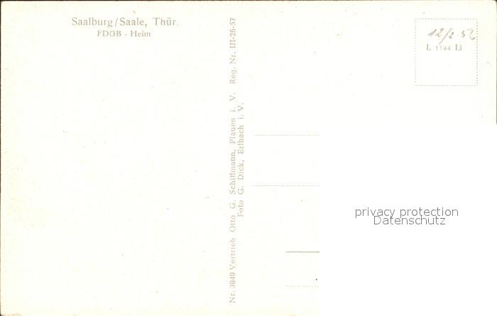 72006310 Saalburg Saale FDGB-Heim postalisch nicht gelaufen Erhaltung siehe scans KatCode: 11110016075135