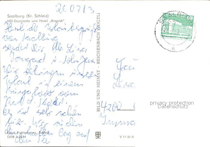 72033603 alte Postkarte Saalburg Saale HO Gaststaette und Hotel Kranich postalisch gelaufen Erhaltung siehe scans KatCode: 11110016075135