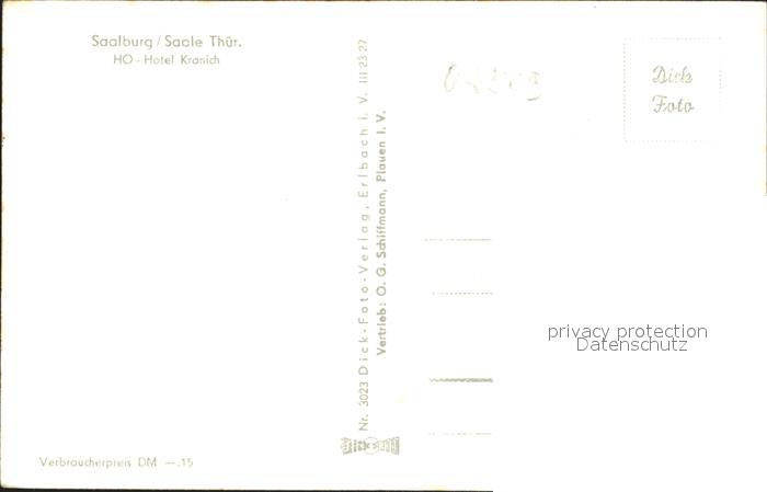 71924455 Saalburg Saale Hotel Kranich postalisch nicht gelaufen Erhaltung siehe scans KatCode: 11110016075135