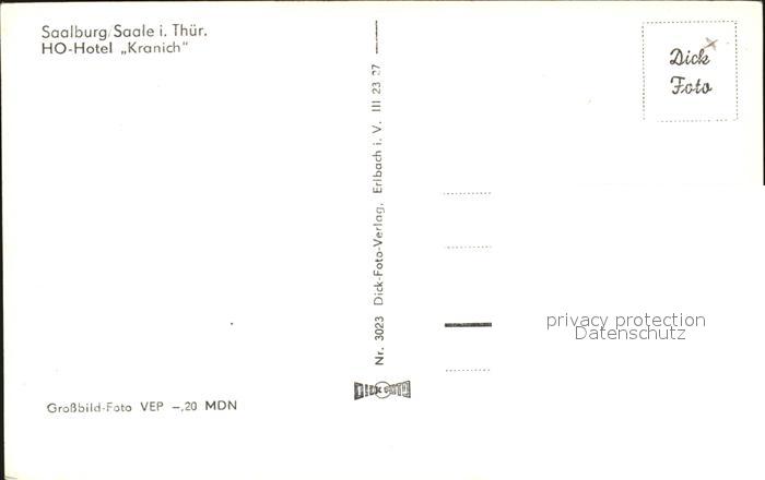 72539591 Saalburg Saale Hotel Kranich an der Saale postalisch nicht gelaufen Erhaltung siehe scans [LiesaD40 kt122box] KatCode: 11110016075135