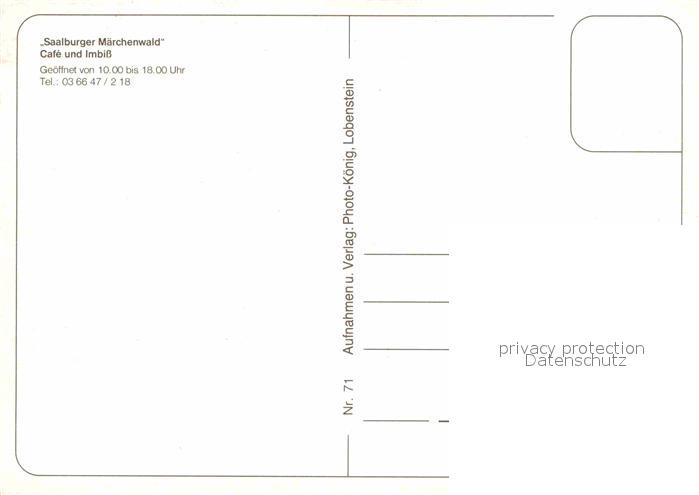 72716631 Saalburg Saale Maerchenwald Cafe und Imbiss postalisch nicht gelaufen Erhaltung siehe scans [LiesaD40] KatCode: 11110016075135