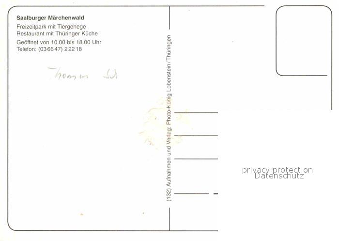 72616599 Saalburg Saale Maerchenwald Freizeitpark mit Tiergehege Restaurant postalisch nicht gelaufen Erhaltung siehe scans [FriedD77] KatCode: 11110016075135