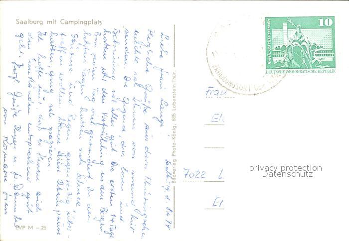 72177132 alte Postkarte Saalburg Saale mit Campingplatz postalisch gelaufen Erhaltung siehe scans KatCode: 11110016075135