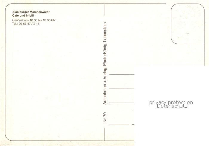 73165024 Saalburg Saale Saalburger Maerchenwald Cafe und Imbiss postalisch nicht gelaufen Erhaltung siehe scans [WerneD78] KatCode: 11110016075135
