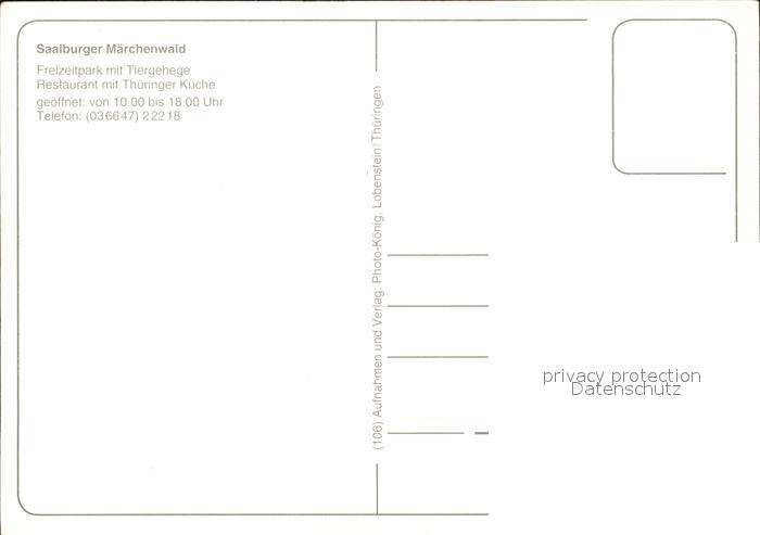 72496917 Saalburg Saale Saalburger Maerchenwald Freizeitpark mit Tiergehege Restaurant postalisch nicht gelaufen Erhaltung siehe scans KatCode: 11110016075135