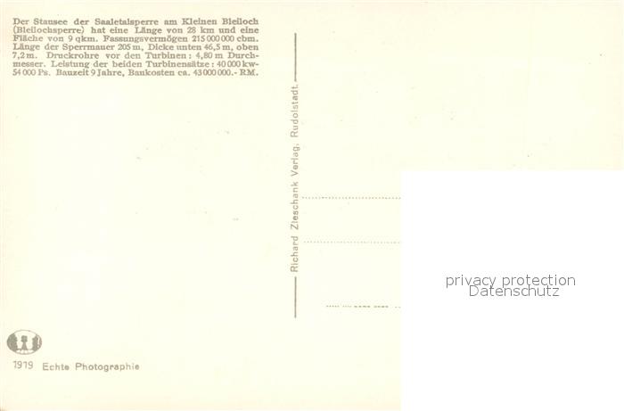 73506840 Saalburg Saale Saaletalsperre Sperrmauer Kraftwerk Stausee postalisch nicht gelaufen Erhaltung siehe scans [KathaD81] KatCode: 11110016075135