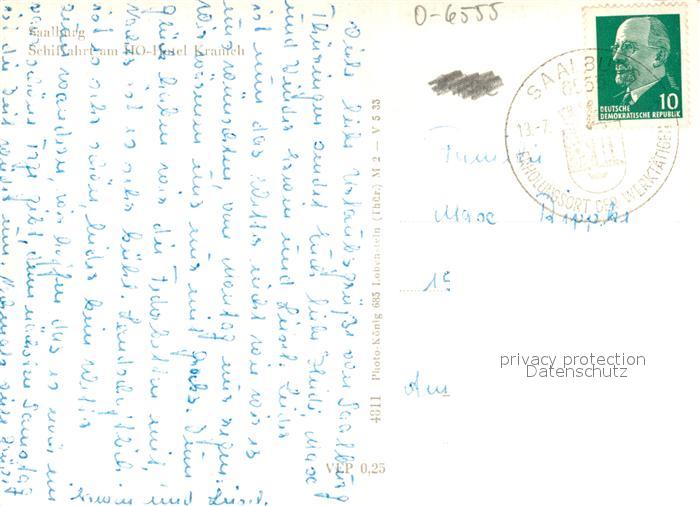 73099851 alte Postkarte Saalburg Saale Schiffahrt HO Hotel Kranich postalisch gelaufen Erhaltung siehe scans [KathaD81] KatCode: 11110016075135