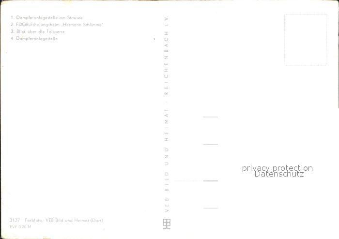 72375864 Saalburg Saale Stausee Dampferanlegestelle FDGB Erholungsheim Hermann Schlimme Talsperre postalisch nicht gelaufen Erhaltung siehe scans KatCode: 11110016075135