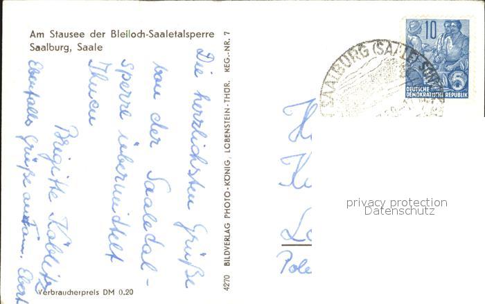 72435466 alte Postkarte Saalburg Saale Stausee der Bleiloch Saaletalsperre postalisch gelaufen Erhaltung siehe scans KatCode: 11110016075135