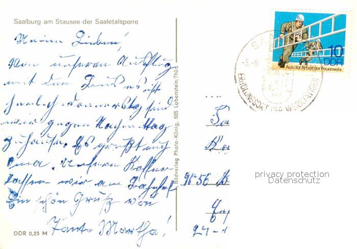 72730521 alte Postkarte Saalburg Saale Stausee der Saaletalsperre postalisch gelaufen Erhaltung siehe scans [FriedD77] KatCode: 11110016075135