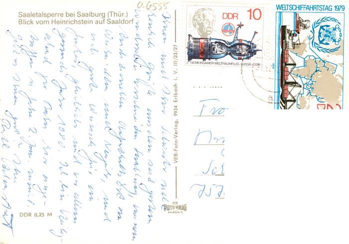73938612 alte Postkarte Saalburg Saale Thueringen Saaletalsperre Blick vom Heinrichstein auf Saaldorf postalisch gelaufen Erhaltung siehe scans [WerneD78] KatCode: 11110016075135