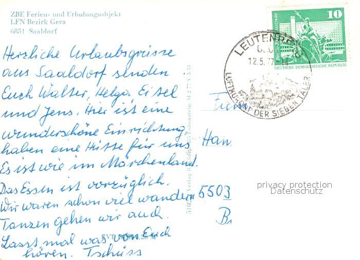 73071379 alte Postkarte Saaldorf Bad Lobenstein ZBE Ferien- Erholungsobjekt LFN Bezirk Gera postalisch gelaufen Erhaltung siehe scans [NatalD47] KatCode: 11110016075062