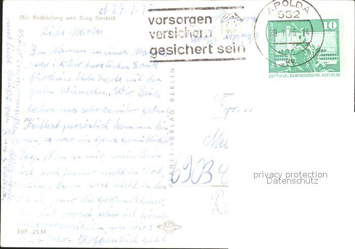 72343498 alte Postkarte Saaleck Rudelsburg Burg Saaleck postalisch gelaufen Erhaltung siehe scans KatCode: 11110015084020
