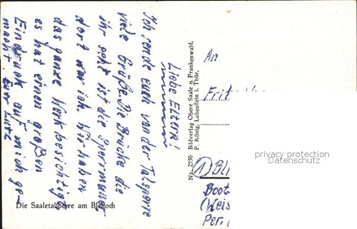 Saaletalsperre am Bleiloch Stausee postalisch nicht gelaufen Erhaltung siehe scans