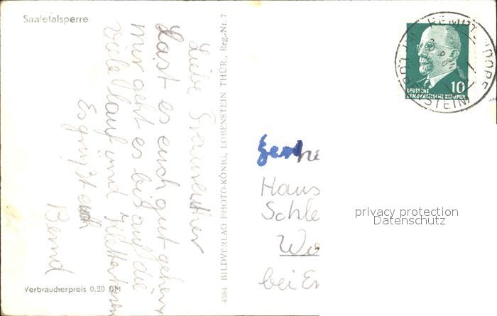 72361817 alte Postkarte Saaletalsperre Heinrichstein Blaupunkt Saalburg postalisch gelaufen Erhaltung siehe scans KatCode: 11110016075009