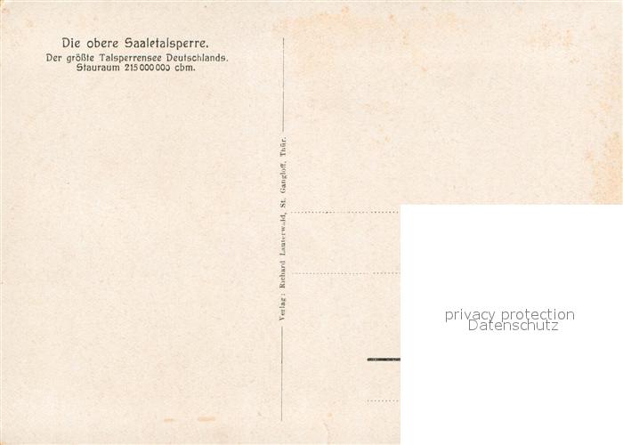 72958476 Saaletalsperre Landkarte postalisch nicht gelaufen Erhaltung siehe scans [PaolaD17] KatCode: 11110016075009