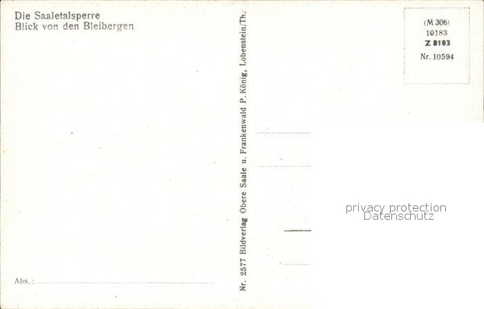 Saaletalsperre Panorama Blick von den Bleibergen Sperrmauer postalisch nicht gelaufen Erhaltung siehe scans