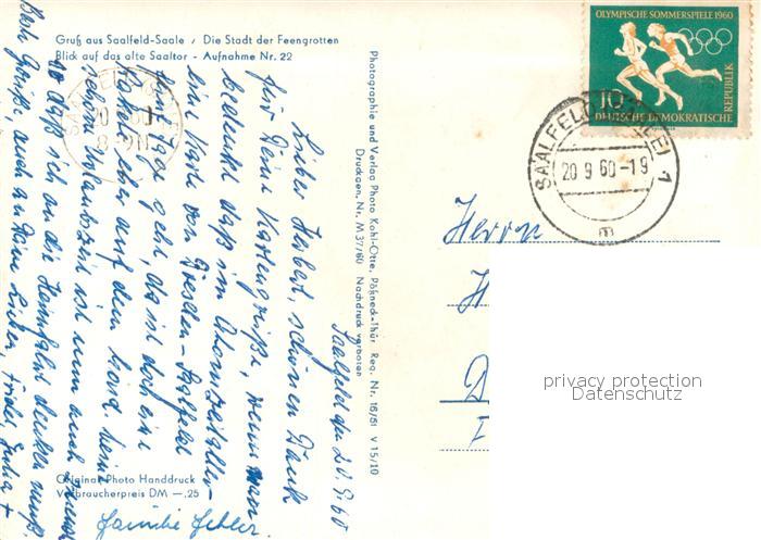 73737396 alte Postkarte Saalfeld Saale Altes Saaltor Bruecke postalisch gelaufen Erhaltung siehe scans [LiesaD40] KatCode: 11110016073077
