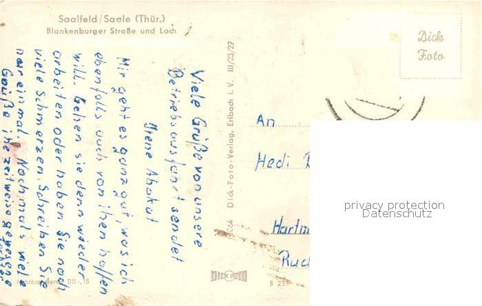 72728717 alte Postkarte Saalfeld Saale Blankenburger Strasse und Loch postalisch gelaufen Erhaltung siehe scans [FriedD77] KatCode: 11110016073077