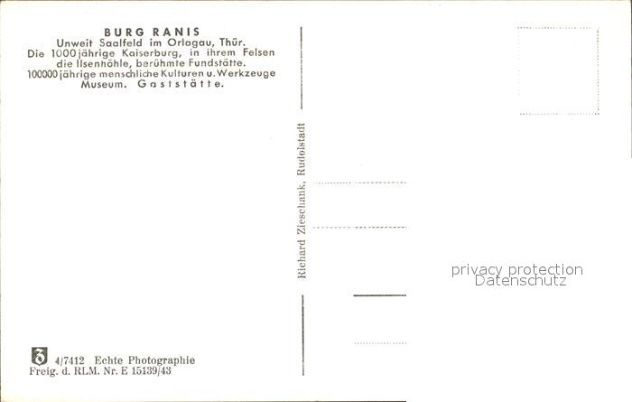 72424420 Saalfeld Saale Burg Ranis Thueringen postalisch nicht gelaufen Erhaltung siehe scans KatCode: 11110016073077