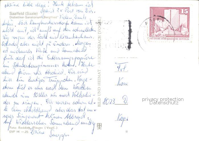 72357310 alte Postkarte Saalfeld Saale Diabetiker-Sanatorium Bergfried postalisch gelaufen Erhaltung siehe scans KatCode: 11110016073077