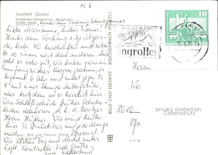 72357309 alte Postkarte Saalfeld Saale Diabetiker-Sanatorium Bergfrieden Grosse Halle postalisch gelaufen Erhaltung siehe scans KatCode: 11110016073077