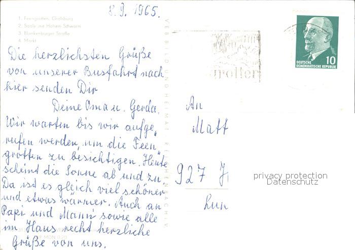 72369914 alte Postkarte Saalfeld Saale Feengrotten Gralsburg Markt Blankenburger Strasse postalisch gelaufen Erhaltung siehe scans KatCode: 11110016073077