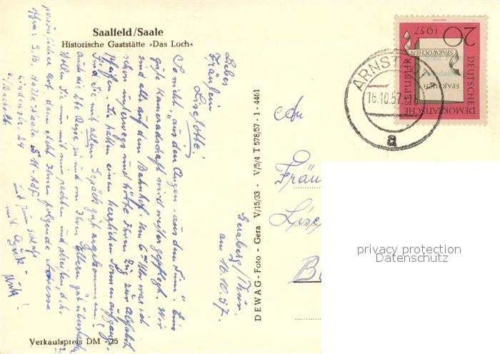 73071593 alte Postkarte Saalfeld Saale Gaststaette Das Loch postalisch gelaufen Erhaltung siehe scans [WerneD78] KatCode: 11110016073077