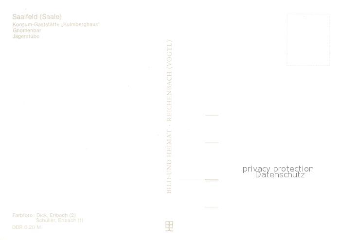 73569263 Saalfeld Saale Gastst?tte Kulmberghaus Gnomenbar J?gerstube postalisch nicht gelaufen Erhaltung siehe scans [PaolaD17] KatCode: 11110016073077