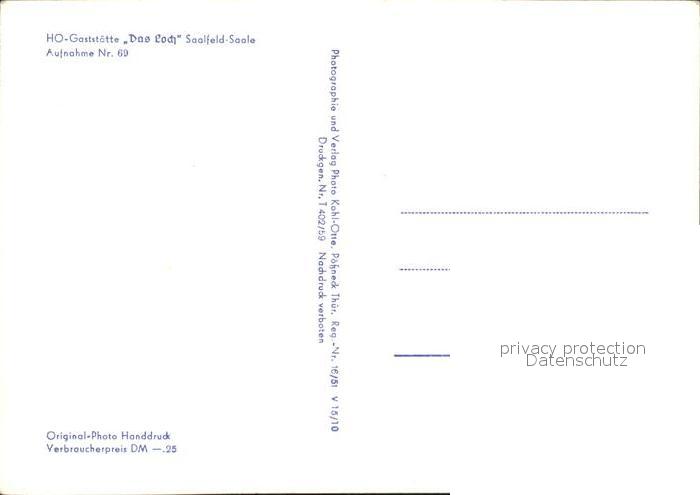 71939523 Saalfeld Saale HO Gasthaus Des Loch postalisch nicht gelaufen Erhaltung siehe scans KatCode: 11110016073077