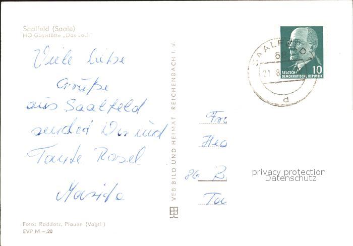 72315023 alte Postkarte Saalfeld Saale HO Gaststaette Das Loch postalisch gelaufen Erhaltung siehe scans KatCode: 11110016073077