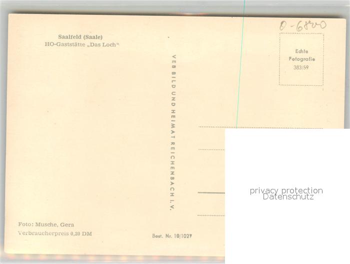 43353422 Saalfeld Saale HO Gaststaette Das Loch postalisch nicht gelaufen Erhaltung siehe scans [KathaD81] KatCode: 11110016073077