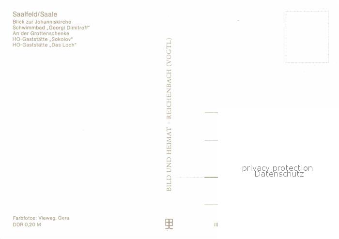 72919504 Saalfeld Saale Johanniskirche Schwimmbad Grottenschenke HO Gaststaette postalisch nicht gelaufen Erhaltung siehe scans [FriedD77] KatCode: 11110016073077