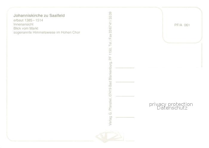 73178395 Saalfeld Saale Johanniskirche postalisch nicht gelaufen Erhaltung siehe scans [PaolaD17] KatCode: 11110016073077