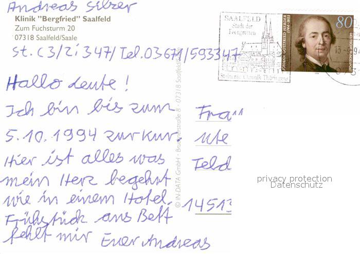 72713078 alte Postkarte Saalfeld Saale Klinik Bergfried postalisch gelaufen Erhaltung siehe scans [LiesaD40] KatCode: 11110016073077