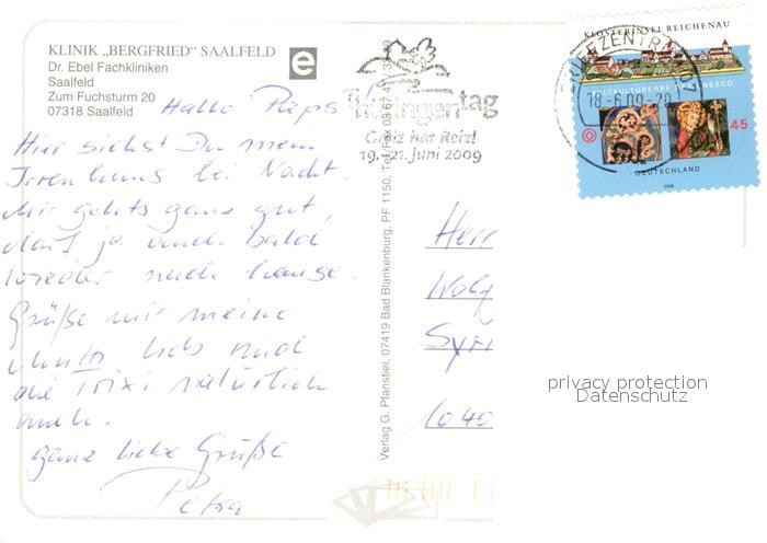 73010190 alte Postkarte Saalfeld Saale Klinik Bergfried Saalfeld postalisch gelaufen Erhaltung siehe scans [WerneD78] KatCode: 11110016073077