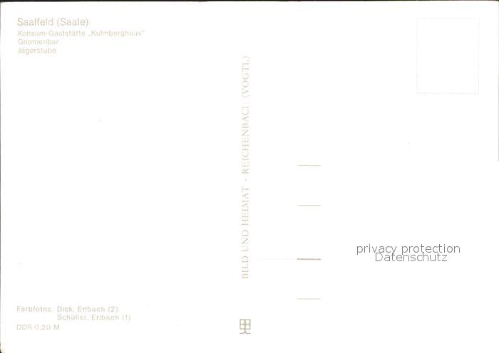 71866004 Saalfeld Saale Konsum-Gaststaette Kulberghaus Gnomenbar Jaegerstube postalisch nicht gelaufen Erhaltung siehe scans KatCode: 11110016073077