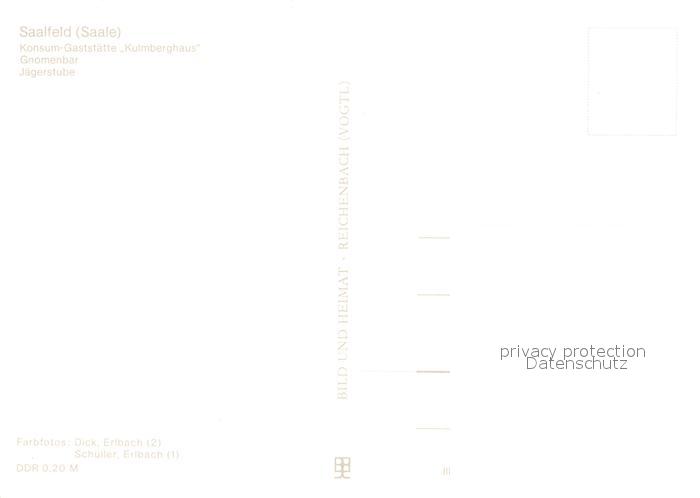 73569963 Saalfeld Saale Konsum Gaststaette Kulmberghaus Gnomenbar Jaegerstube postalisch nicht gelaufen Erhaltung siehe scans [WerneD78] KatCode: 11110016073077