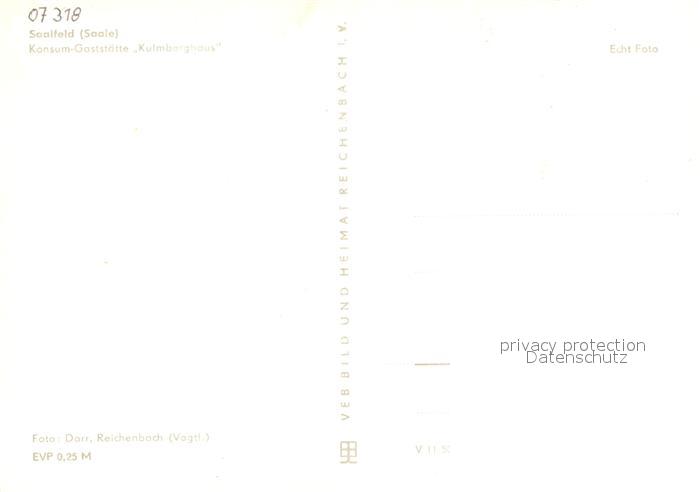 73741762 Saalfeld Saale Konsum Gaststaette Kulmberghaus postalisch nicht gelaufen Erhaltung siehe scans [WerneD78] KatCode: 11110016073077