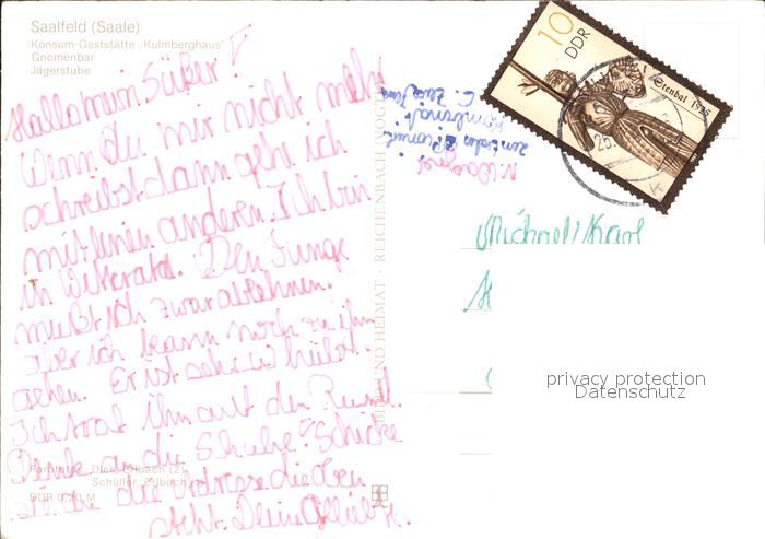 72479708 alte Postkarte Saalfeld Saale Konsumgaststaette Kulmberghaus postalisch gelaufen Erhaltung siehe scans KatCode: 11110016073077