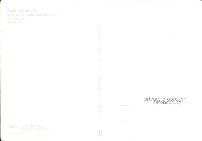 72213824 Saalfeld Saale Konsumgaststaette Kulmberghaus Speisesaal Jaegerstube postalisch nicht gelaufen Erhaltung siehe scans KatCode: 11110016073077