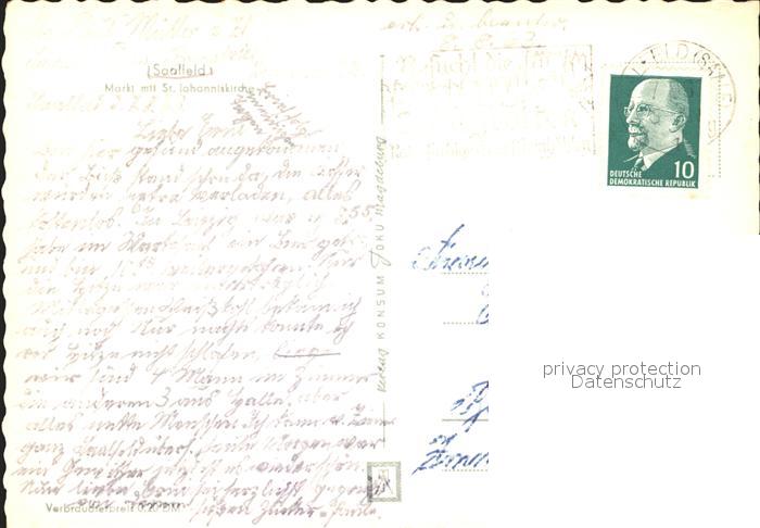 72022430 alte Postkarte Saalfeld Saale Markt mit Kirche postalisch gelaufen Erhaltung siehe scans KatCode: 11110016073077