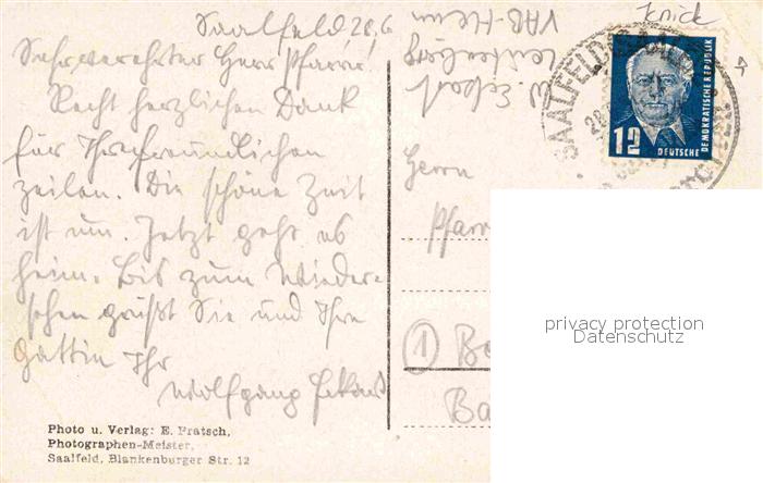 72826776 alte Postkarte Saalfeld Saale Markt mit St. Johanniskirche postalisch gelaufen Erhaltung siehe scans [LiesaD40] KatCode: 11110016073077
