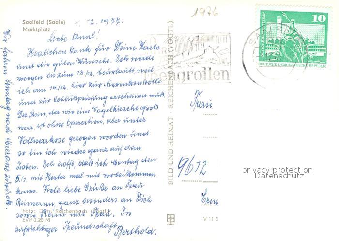 72971256 alte Postkarte Saalfeld Saale Marktplatz postalisch gelaufen Erhaltung siehe scans [NatalD47] KatCode: 11110016073077