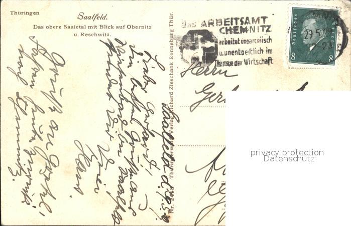 72090386 alte Postkarte Saalfeld Saale Obernitz Reschwitz postalisch gelaufen KatCode: 11110016073077